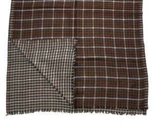 In questo tipo di impacchi vengono selezionati principalmente i colori blu navy, nero, marrone scuro, beige, senape, grigio chiaro, grigio scuro e blu inglese. La trama a spina di pesce è paragonata alla normale trama normale. Sciarpe di lusso uomo e scialle da uomo le dimensioni sono principalmente 120 x 200 cm, 100 x 200 cm e 140 x 140 cm. Agli uomini non piacciono le frange, quindi tutte le sciarpe e gli impacchi hanno piccole frange / sfilacciature per le ciglia.